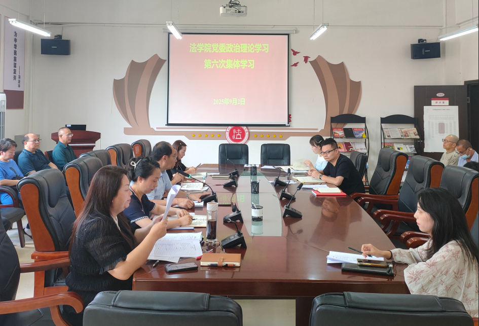 (法学院 潘吉脉 报道|摄影 )9月2日下午,法学院教职工政治理论学习2025年第六次集体学习(扩大)研讨会在西区文德楼310会议室召开。会议围绕“深入学习领会习近平总书记近期重要讲话精神,以彻底的自我革命精神将作风建设持续引向深入,坚持不懈把新时代党的自我革命要求落实到位,为谱写新时代贵财新篇章提供坚强保障”进行集中学习研讨。院党委书记邵新顺主持会议并讲话,全体院领导出席会议,全院教职工参会。